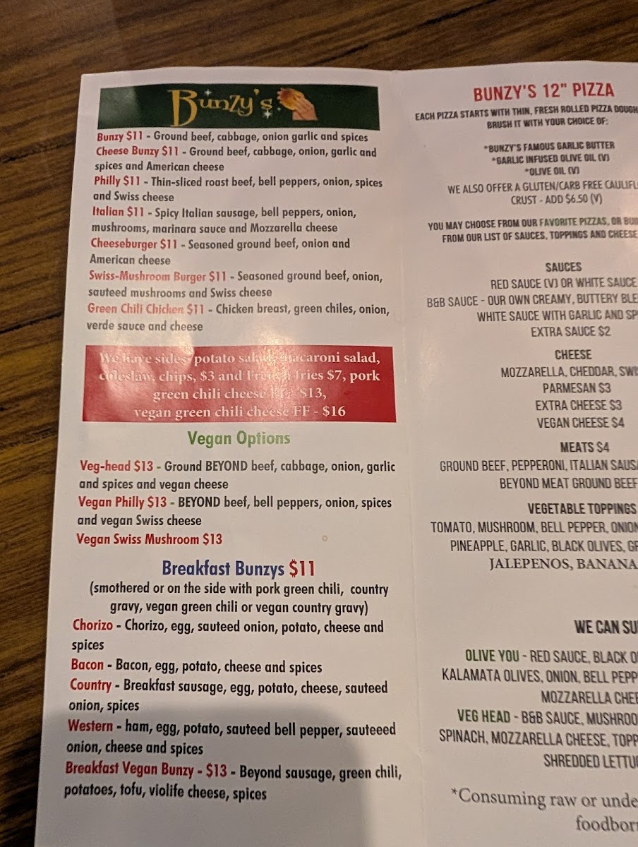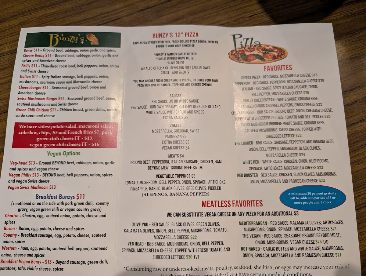 If you're looking for a spot where great food and drinks come together in a fun, laid-back atmosphere, look no further than B&b's Bunzy's And Booze Menu. Nestled at 1919 E Boulder St in Colorado Springs, this place offers a delicious array of mouthwatering dishes and creative cocktails that pair perfectly with the vibrant energy of the restaurant. Whether you're in the mood for a hearty meal or something light to nibble on, their menu has something for everyone. With a wide variety of flavors and ingredients, each dish is crafted with care to satisfy every craving. From fresh appetizers to indulgent main courses, every bite promises to leave you wanting more. And let's not forget the drinks - their expertly crafted cocktails and cold beers are the ideal companions to your meal, making your dining experience even more memorable.